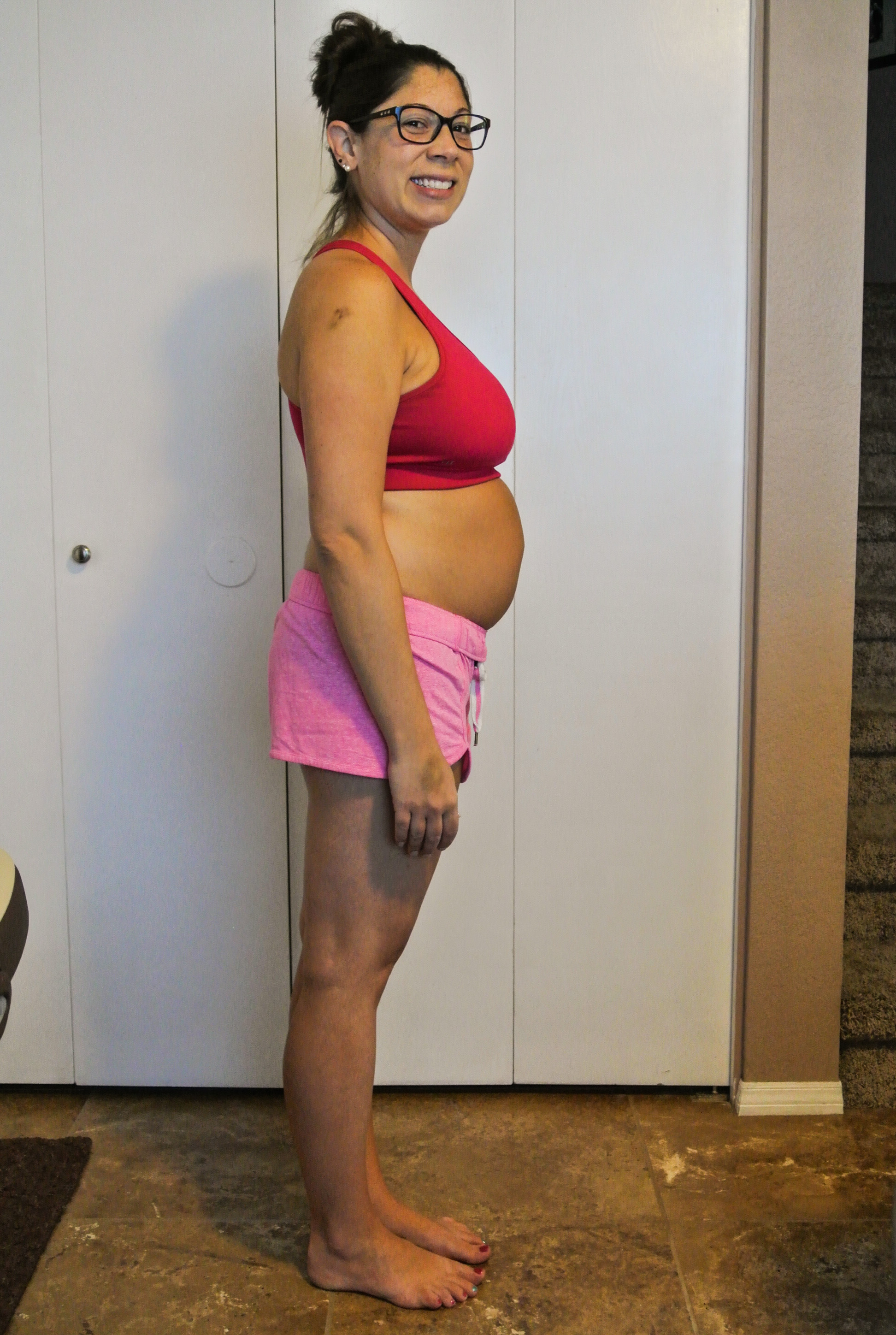These are pictures of my post-baby body at one week after delivery – thank you for not judging the messy hair, tired eyes, and lack of makeup. 🙂 I had glorious plans to share pictures right after I arrived home from the hospital, but there was cleaning and grocery shopping to do that of course, I had planned on doing prior to yet another eager-to-exit infant showed up. Now that my life is mostly in order again—except, ya know, for that waking up throughout the night thing—I am ready to truly begin my journey to getting back into shape.