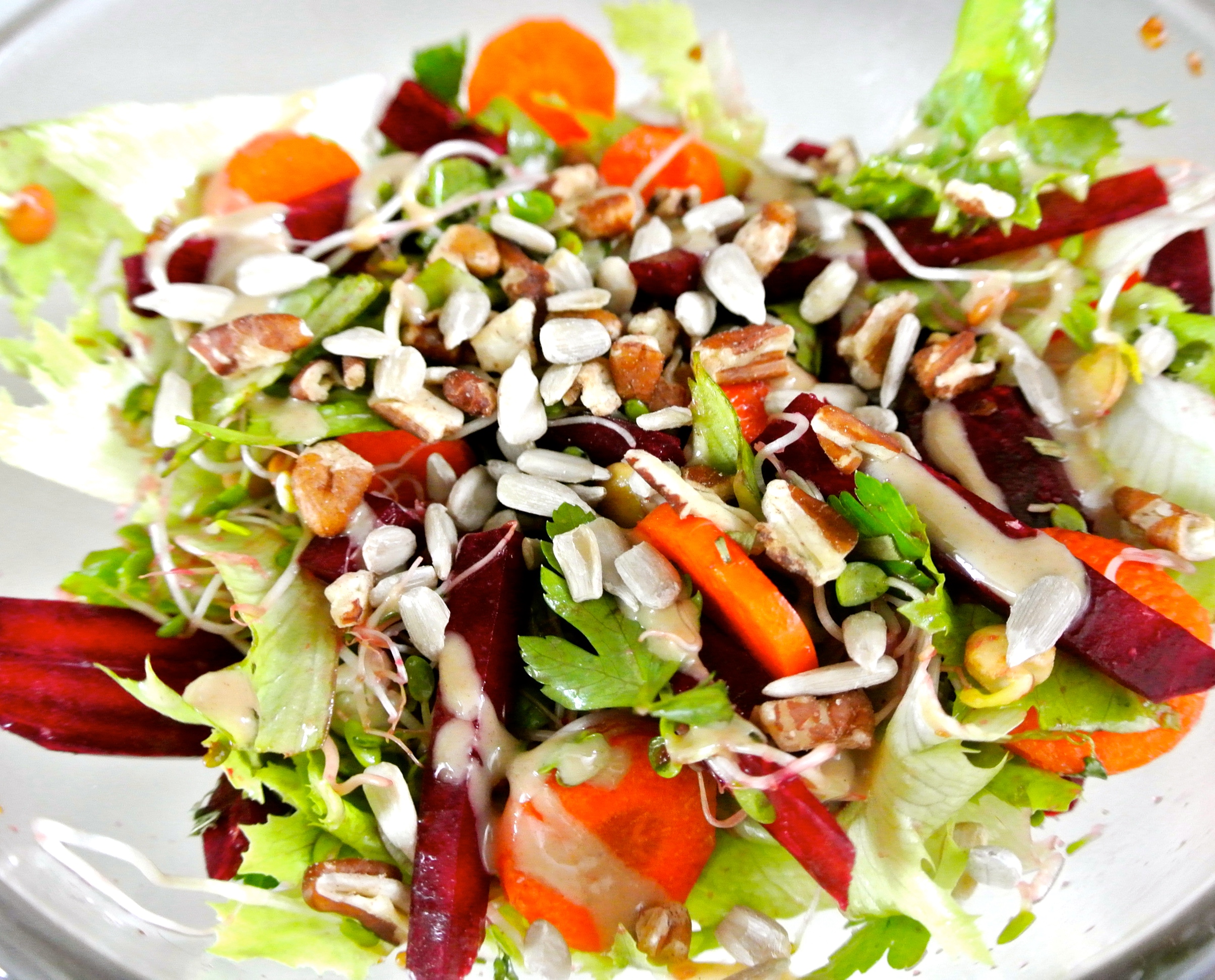 - 3 tbsps seeds (e.g. chia, hemp, poppy, flax, etc.) –> I’m 1 tbsp each chia, hulled hemp, and ground flax.