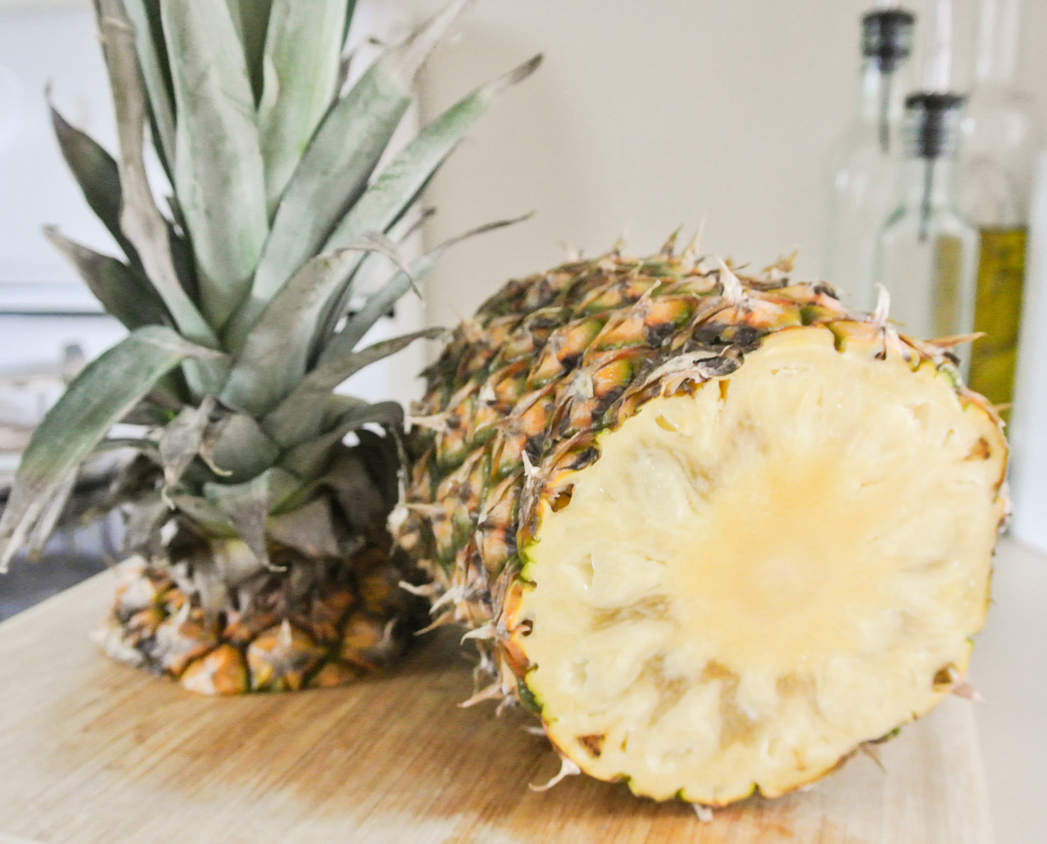 Since we’re on the subject, how do you cut a pineapple? Buying it precut or diced in a can is more expensive. Believe me, breaking it down yourself is easier than you’d expect. I have to give credit to Rachael Ray for my method, which I use for all melon-like fruits and also gourds. Follow these steps to cut a pineapple with ease in minutes: