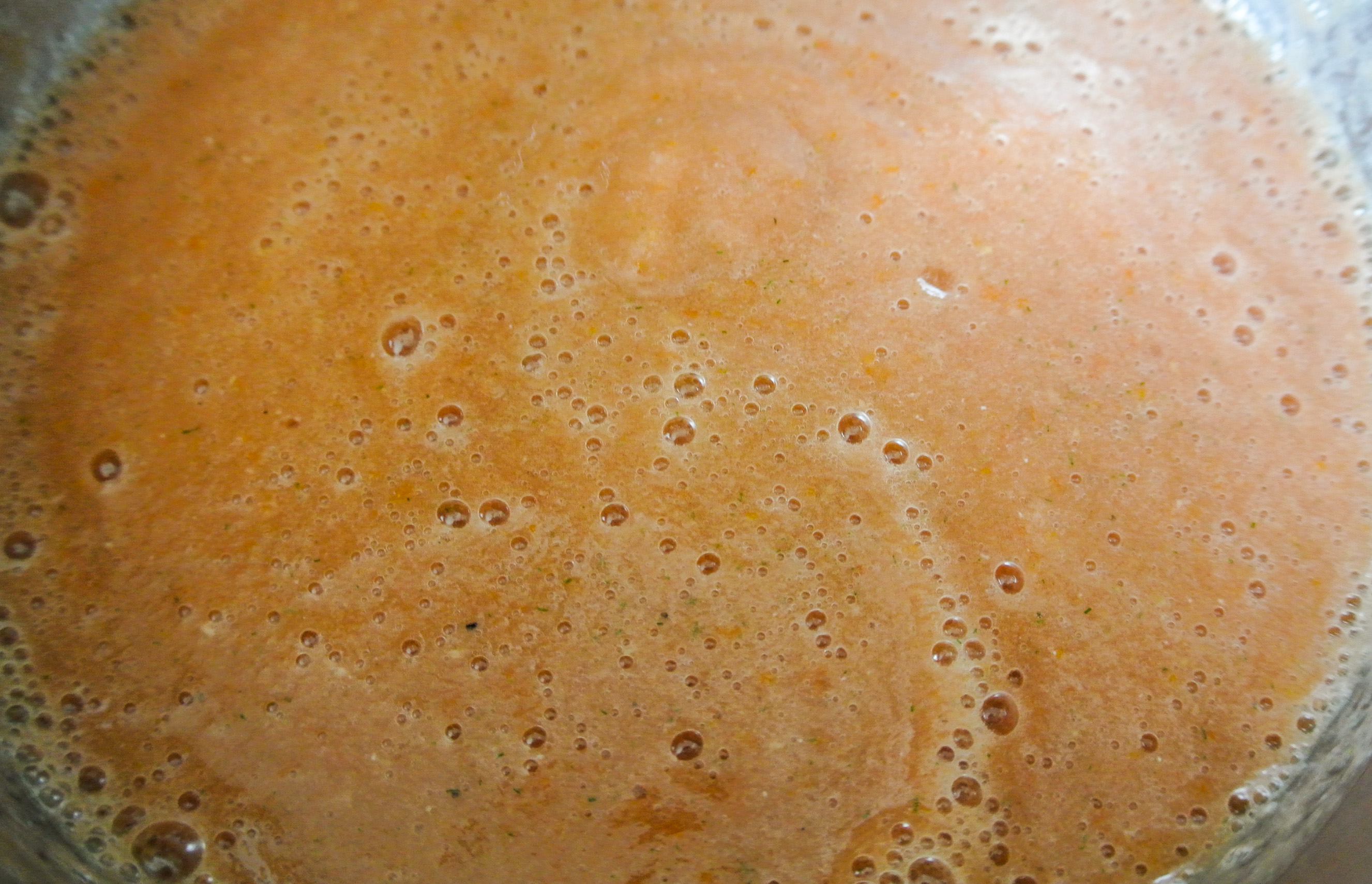 If you are making a sauce from scratch, get that started first. To make a homemade marinara, for example, as I’m doing today, very coarsely chop the tomatoes, onion, and garlic and puree them together in a blender or food processor. Pour into a sauce pan, add the remaining ingredients, and simmer on medium-low heat for 1-2 hours, or until the sauce has reduced by at least one third. Remove the bay leaf at this point.