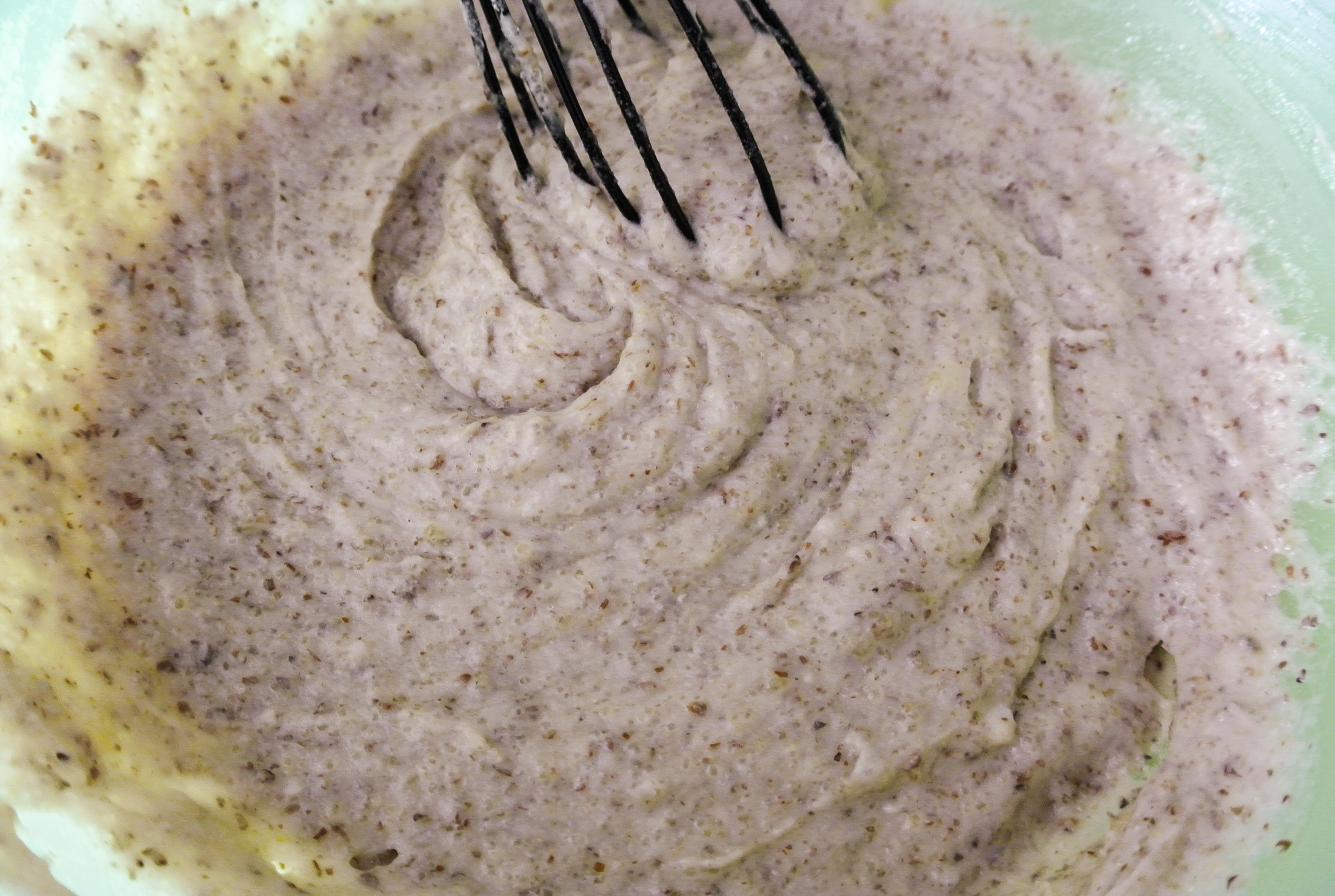 • 1-1 ½ cups plant milk (depending on the flour) –>  I’m using just over 1 cup of flax.