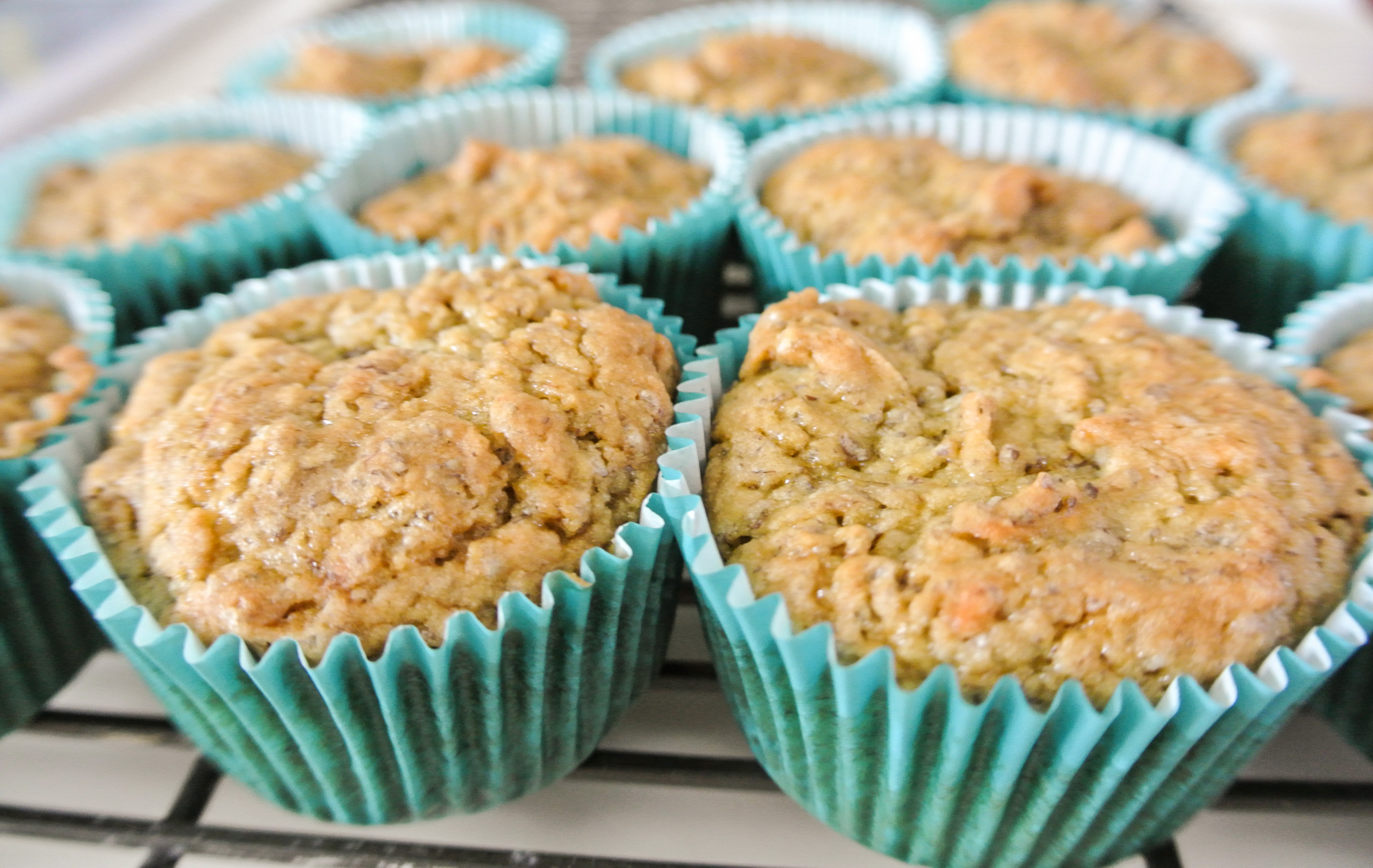 Mix together all of your wet ingredients in the same bowl. Separately mix all dry ingredients. Using a whisk or wooden spoon, slowly incorporate the dry into the wet until a smooth, semi-pourable batter forms. Stir in any specialty ingredients, if using.